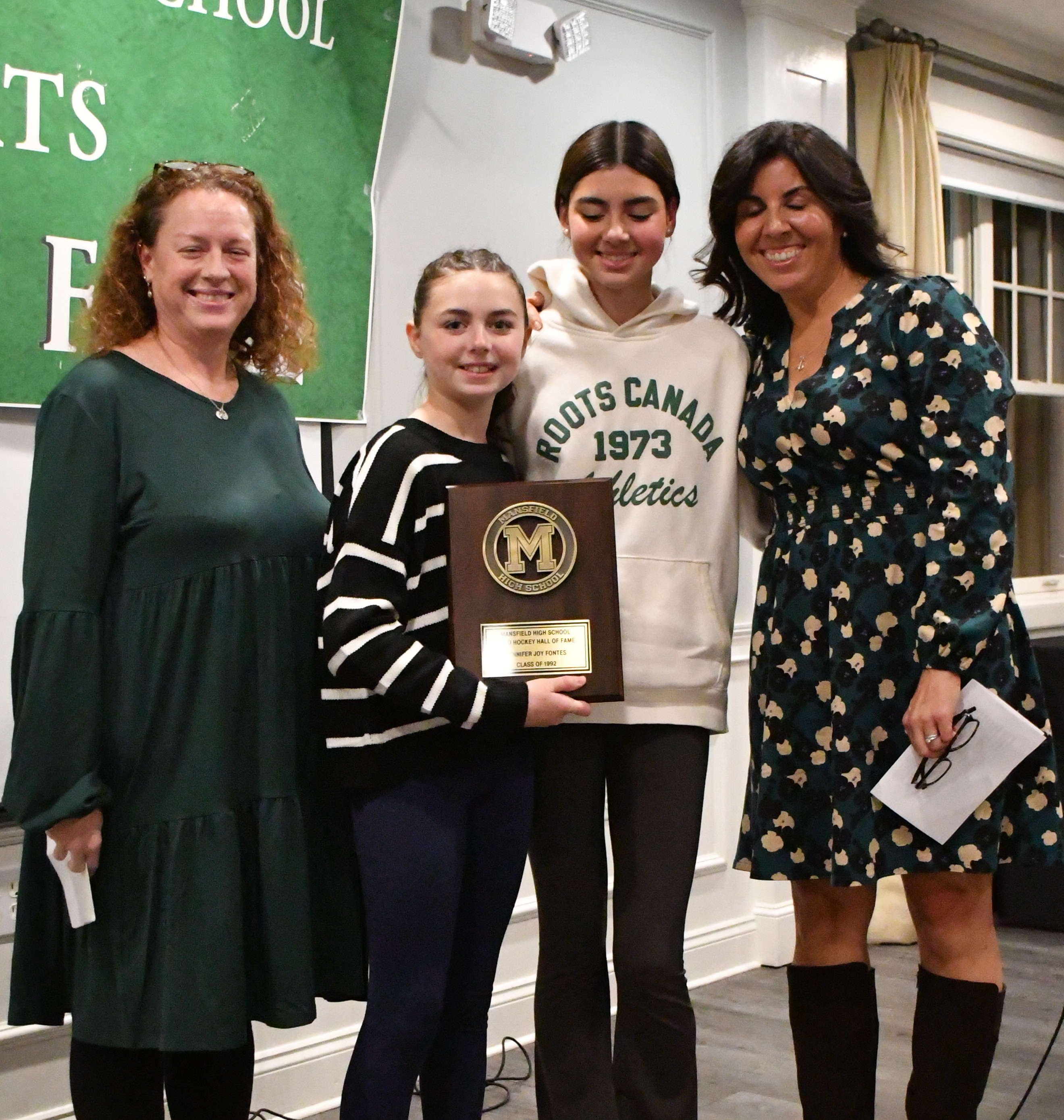 Photo left to right; Recipient Jennifer Joy Fontes(with her daughters), presenter Amy McGuirk